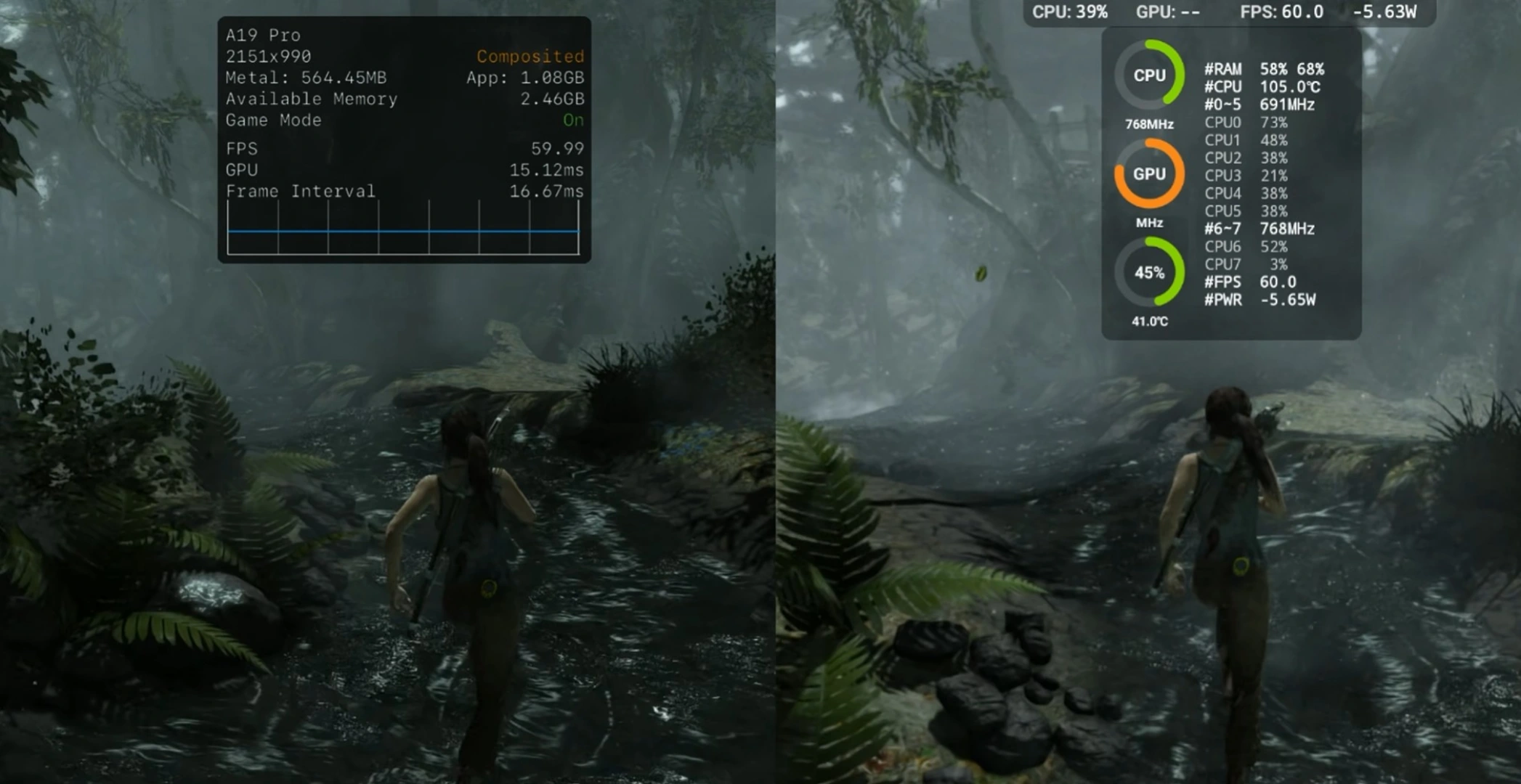 اجرای پایدار Tomb Raider 2013 با ۶۰ فریم بر ثانیه در A19 پرو و اسنپدراگون ۸ الیت نسل ۵؛ برتری آیفون در رزولوشن و بافت‌ها