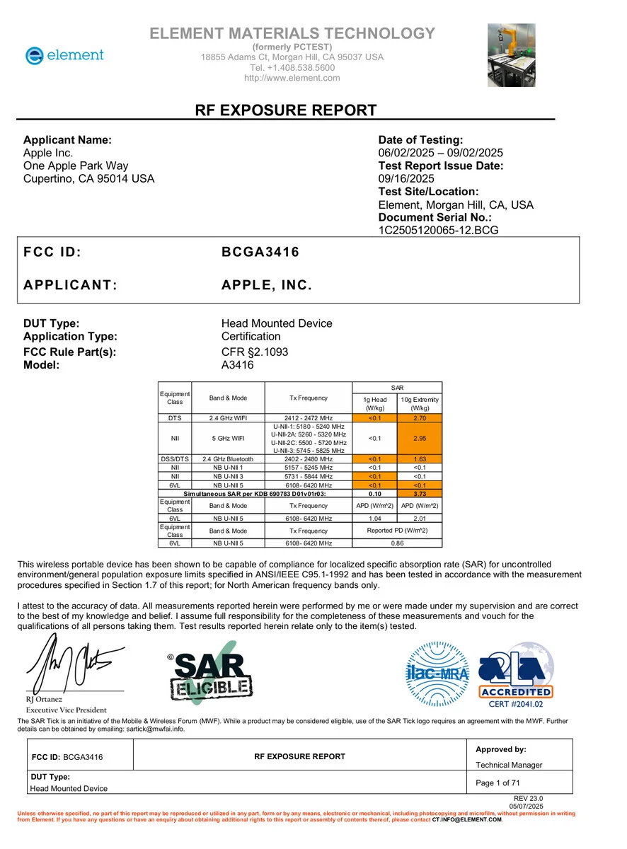 اسناد کمیسیون فدرال ارتباطات آمریکا (FCC) نشان میدهد اپل آماده است یک هدست جدید را به بازار جهانی بیاورد. در این اسناد، دستگاهی با شماره مدل A3416 ثبت شده که همانند نسل کنونی Vision Pro از Wi-Fi 6 پشتیبانی میکند و خبری از Wi-Fi 6E یا Wi-Fi 7 نیست.