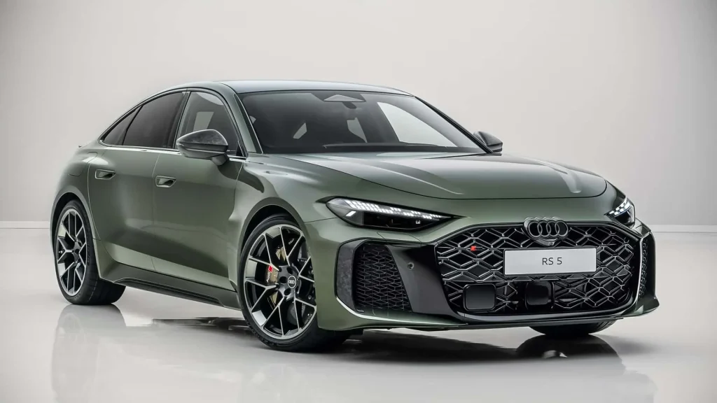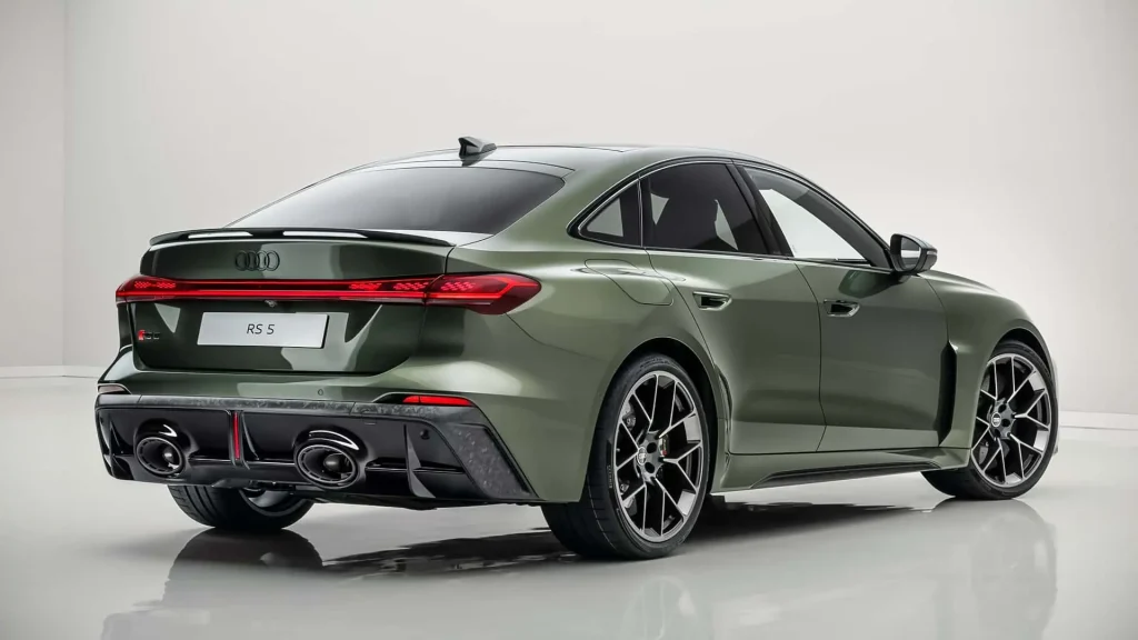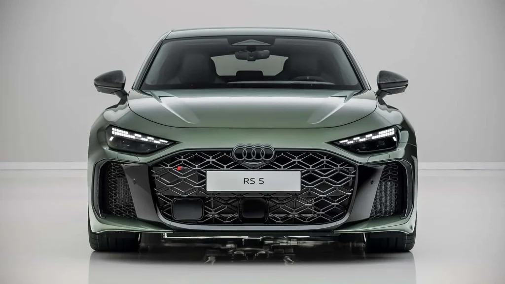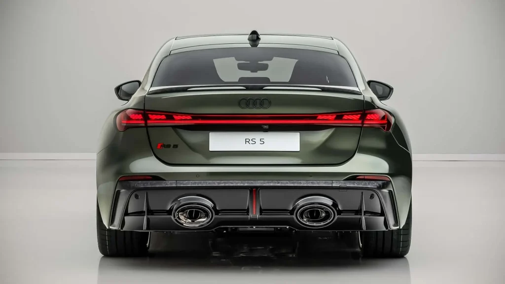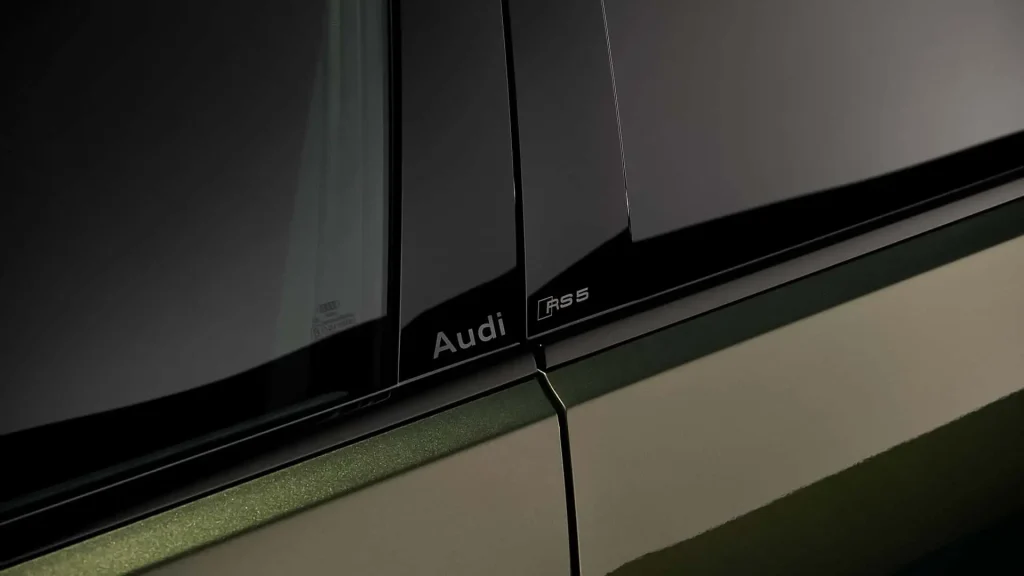 ظاهر RS5 جدید نیز تغییرات چشمگیری داشته است. نسخههای پهن بدنه، شامل ورودیهای هوا در گلگیر جلو و خروجیهای اگزوز بیضی بزرگ هستند که به مرکز سپر نزدیک شدهاند. نسخه Avant پنجدر است و در مجموع، نمای بصری RS5 با رینگهای ۲۰ یا ۲۱ اینچی و ترمزهای سرامیکی اختیاری، جلوهای قدرتمند و متمایز نسبت به مدلهای استاندارد A5 دارد.