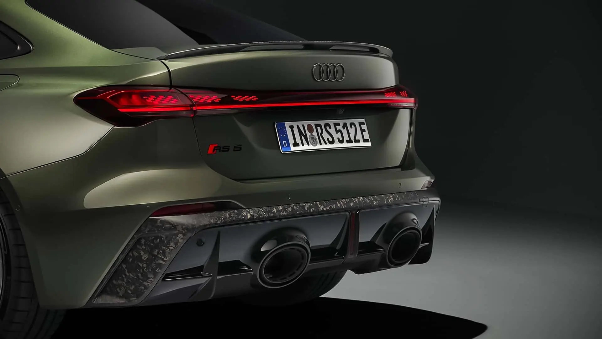 ظاهر RS5 جدید نیز تغییرات چشمگیری داشته است. نسخههای پهن بدنه، شامل ورودیهای هوا در گلگیر جلو و خروجیهای اگزوز بیضی بزرگ هستند که به مرکز سپر نزدیک شدهاند. نسخه Avant پنجدر است و در مجموع، نمای بصری RS5 با رینگهای ۲۰ یا ۲۱ اینچی و ترمزهای سرامیکی اختیاری، جلوهای قدرتمند و متمایز نسبت به مدلهای استاندارد A5 دارد.