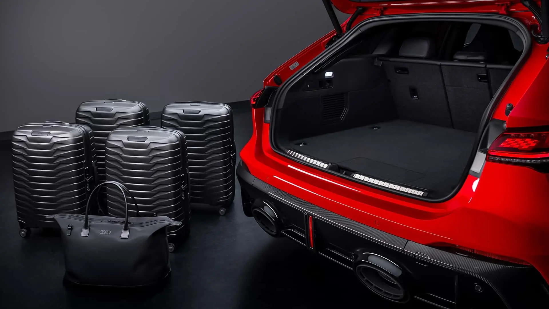 چراغهای ماتریکس LED با رنگ تیره و حلقههای چهارگانه سیاه، جلوه دراماتیک خودرو را تقویت کرده و طرح پرچم شطرنجی در چراغهای OLED عقب نیز هویت بصری خاص RS را نشان میدهد. برای علاقهمندان، برخی عناصر خارجی از جمله اسپویلر و جلوپنجره از فیبرکربن قابل سفارش است تا ظاهری اسپرتتر و متمایز به خودرو بدهد.