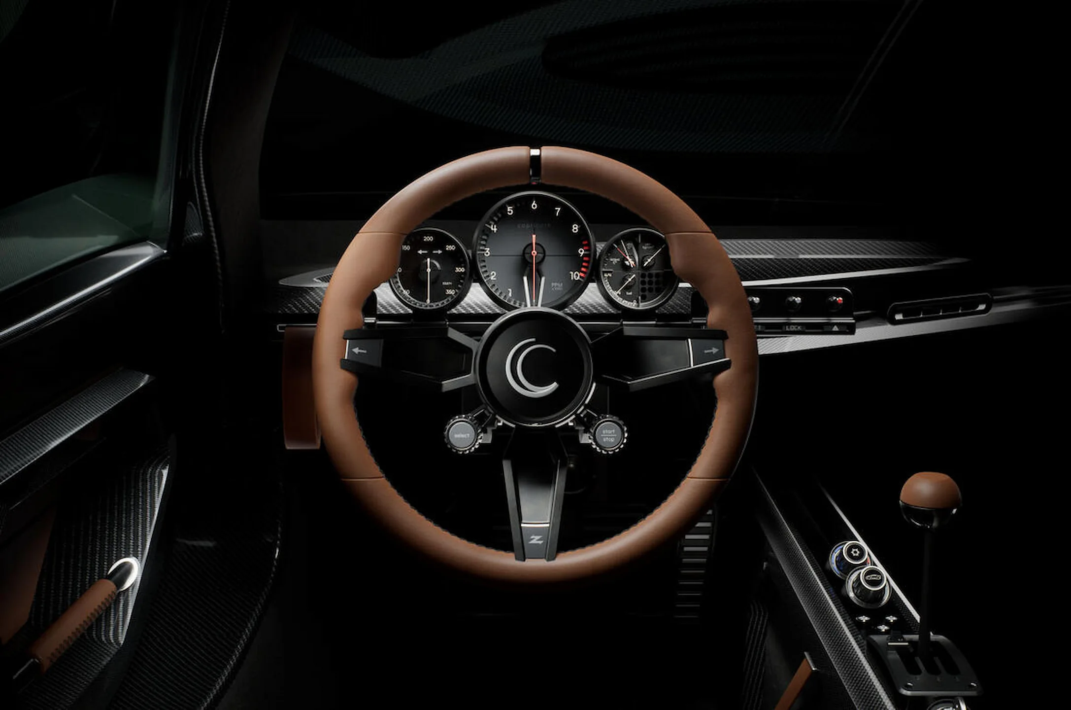 در فضای داخلی، الهام از خودروهای مسابقهای کلاسیک بهخوبی دیده میشود. پنل پشت فرمان کاملاً آنالوگ است و دور موتور بیشترین بخش آن را اشغال کرده؛ ورود به کابین از طریق درهای بالپرنده انجام میشود. صندلیها مستقیماً به شاسی متصل شدهاند و پدالباکس قابلیت تنظیم برای رانندگان با قدهای متفاوت را دارد. حتی دستهدنده نیز تا ۸۰ میلیمتر در امتداد تونل گیربکس قابل تنظیم است.