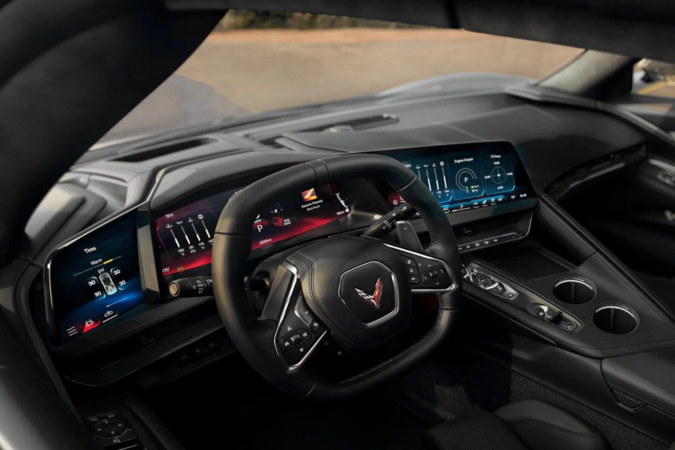 تمامی نمایشگرها اکنون با رنگ‌های زنده‌تر، واکنش سریع‌تر و قابلیت‌های گسترده‌تر همراه شده‌اند. کنترل‌گر جدید Drive Mode در کنار دنده قرار گرفته و طراحی گرافیکی حالت‌های Tour، Sport و Track بازطراحی شده است. همچنین، پد شارژ بی‌سیم دوگانه در زیر نمایشگر مرکزی با درپوش مخصوص تعبیه شده تا از لغزش گوشی جلوگیری شود.
