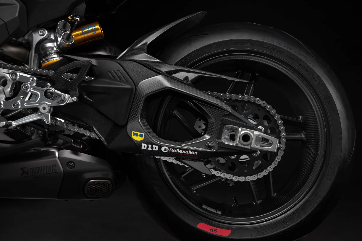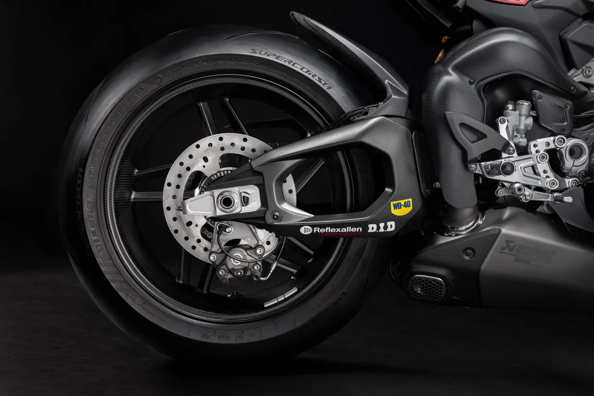 این نسخه از موتور 1103CC Desmosedici Stradale استفاده میکند و نسبت به Panigale V4 S استاندارد که ۲۱۶ اسببخار تولید میکند، قدرتش با سایلنسر Akrapovič و تنظیمات مخصوص به ۲۱۸.۵ اسببخار رسیده است. سایلنسر همچنین ۲.۵ کیلوگرم از وزن را کاهش داده و چرخهای پنجپره کربنی نیز ۰.۹۵ کیلوگرم سبکتر از نمونههای فورجشده هستند؛ بنابراین وزن کلی موتور کمتر شده است.