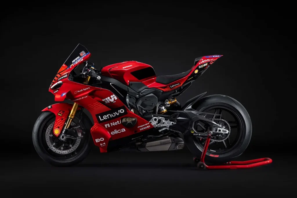 دوکاتی دومین نسخه اختصاصی مارک مارکز را تنها دو ماه پس از معرفی نمونه Panigale V2 در EICMA رونمایی کرد و این بار یک Panigale V4 مبتنی بر مدل پانیگاله 2025 V4 S را عرضه میکند. این موتور که با الهام آشکار از Desmosedici GP25 ساخته شده، قیمت بسیار بالای ۷۹۳۰۰ پوند (حدود ۱۰۶ هزار دلار) دارد و با رویکردی تماما MotoGP محور طراحی شده است تا حس یک نسخه ویژه واقعی را انتقال دهد.