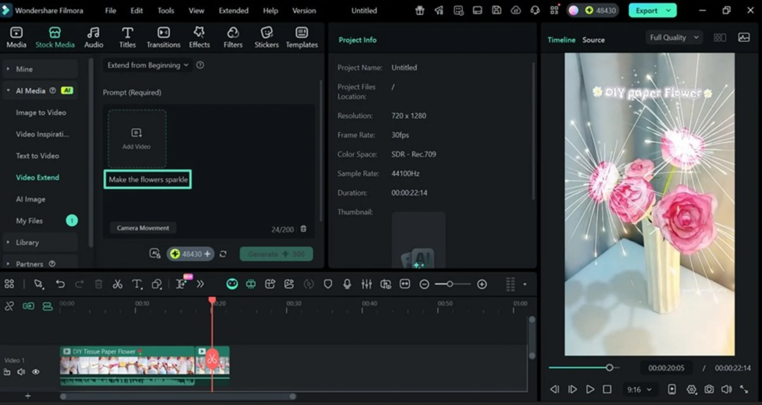 قابلیت AI Extend ایجاد جریان نرم بین صحنهها را فراهم میکند و امکان تولید تا هشت ثانیه اضافی از هر کلیپ بر اساس دستور کاربر را میدهد. کاربران میتوانند مدت زمان و وضوح موردنظر خود را تعریف کنند و خروجی به طور یکپارچه در جدول زمانی قرار میگیرد. پشتیبانی از صدا نیز به حفظ پیوستگی طبیعی صوت بدون نیاز به ترکیب دستی کمک میکند و ساعات زیادی از کار دقیق را صرفهجویی میکند.