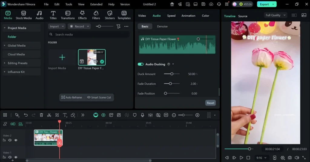 ابزارهای صوتی Filmora با خودکارسازیهای هوشمند، کیفیت صدا را در هر ویدیو ارتقا میدهند. Audio Ducking موسیقی پسزمینه را هنگام تشخیص گفتار کاهش میدهد و Voice Changer جلوههای صوتی خلاقانه ارائه میدهد. Audio Mixer نیز امکان تنظیم دقیق حجم و اعمال گذارهای نرم را فراهم میکند تا صداهای حرفهای بدون پیچیدگی تولید شود.