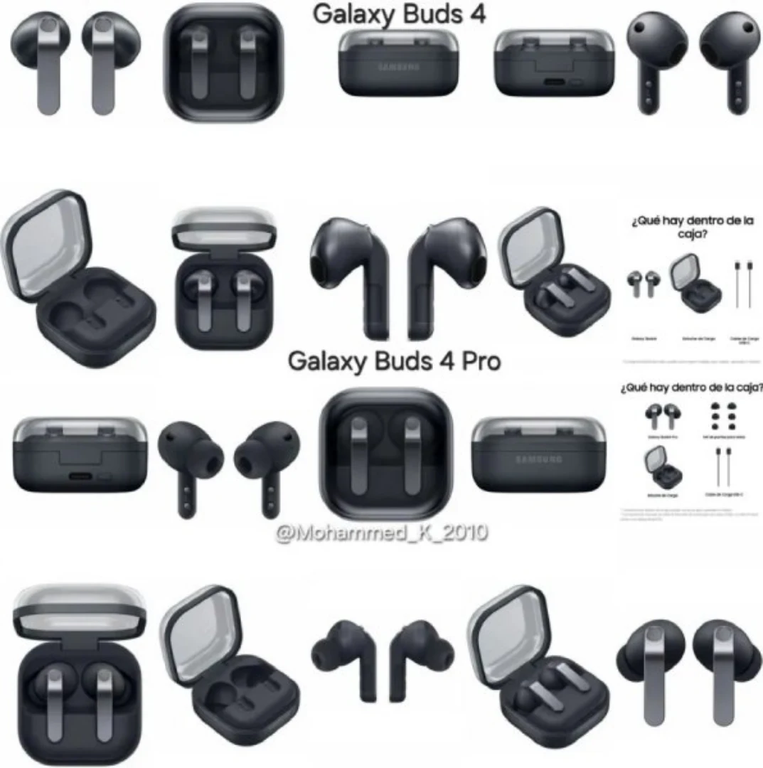تصاویری تازه از نسل بعدی هدفونهای بیسیم سامسونگ در سطح اینترنت منتشر شده. عکسهایی که توسط محمد خاتری در شبکه اجتماعی X به اشتراک گذاشته شده، مدلهای گلکسی بادز ۴ و بادز ۴ پرو را از زوایای مختلف و در رنگ مشکی نشان میدهد. بزرگترین تغییر ظاهری در طراحی ساقههای هدفونها دیده میشود که حالا لبهای صاف و بازطراحی شده دارند و نسبت به نسل پیشین ظاهری مدرنتر پیدا کردهاند.