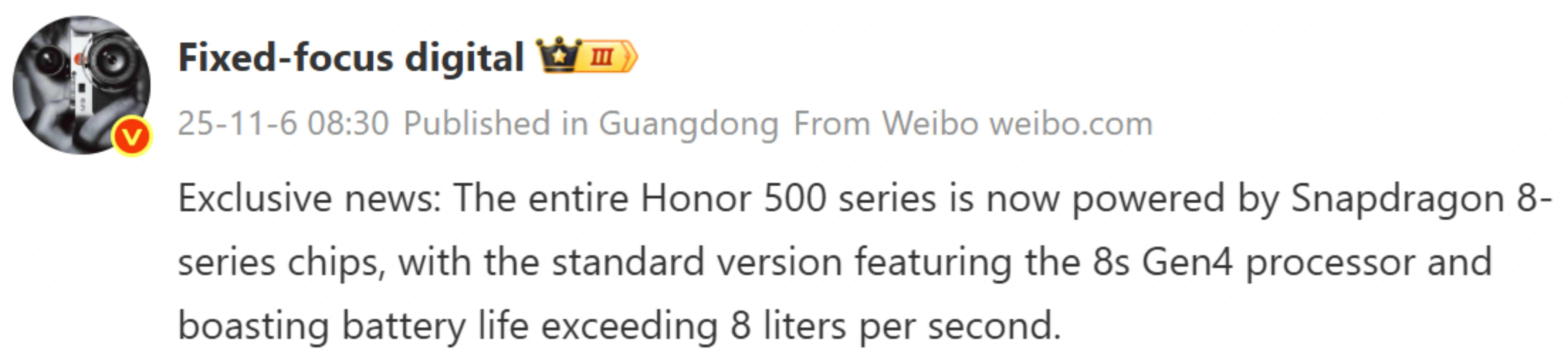 سری آنر ۵۰۰ با تراشههای پرچمدار کوالکام و باتری ۸۰۰۰ میلیآمپرساعتی در راه است