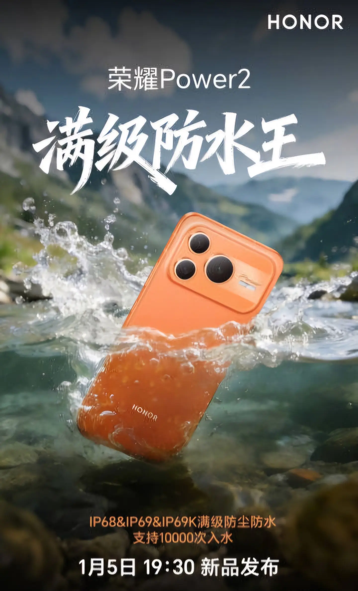 بر اساس اطلاعات تأییدشده در تیزر آنر Power 2، دارای گواهیهای IP69 و IP69K است که مقاومت کامل در برابر گردوغبار، نفوذ آب، غوطهوری و پاشش آب با فشار و دمای بالا را تضمین میکند. آنر اعلام کرده این گوشی در تاریخ ۵ ژانویه ۲۰۲۶ (۱۵ دی) بهطور رسمی در بازار داخلی چین معرفی خواهد شد و پیش از عرضه توجه رسانهها را جلب کرده است.