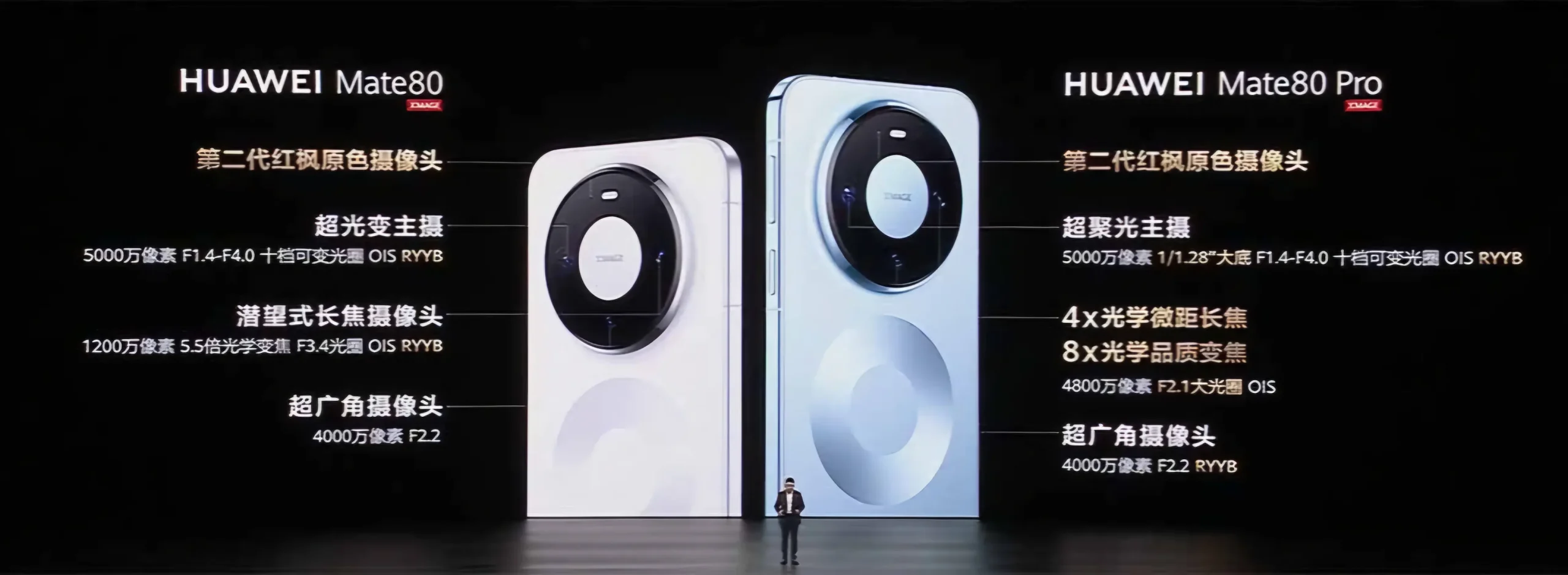 سیستم دوربین این سری بر پایه نسل دوم فناوری تصویربرداری «Maple Leaf» ساخته شده است. در مدل استاندارد، دوربین اصلی ۵۰ مگاپیکسلی با دیافراگم متغیر و لنز پریسکوپی ۱۲ مگاپیکسلی استفاده شده، در حالیکه Mate 80 Pro به دوربین اصلی پیشرفتهتر، تلهفوتوی ۴۸ مگاپیکسلی و ISP نسل نهم مجهز است. این ارتقاها پردازش سریعتر و عملکرد بهتر در زوم را هدف گرفتهاند.