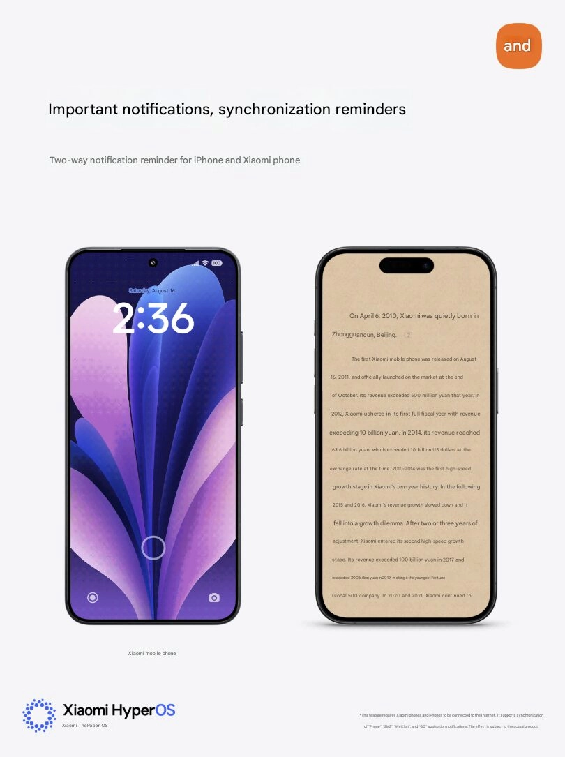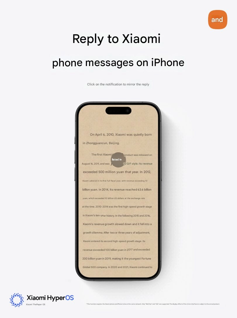علاوه بر این، HyperOS 3 امکان هماهنگی و همکاری بی‌سابقه با دستگاه‌های اپل را فراهم می‌کند. کاربران می‌توانند برنامه‌های شیائومی را مستقیماً روی صفحه نمایش Mac اجرا کنند و از طریق Touch ID دستگاه خود را قفل‌گشایی کنند. پیام‌های شیائومی را می‌توان از آیفون پاسخ داد و انتقال فایل‌ها و مدیریت اعلان‌ها بین دستگاه‌های مختلف به‌صورت یکپارچه انجام می‌شود. همچنین با MiShare Launcher، کاربران می‌توانند ویژگی‌ها و اپلیکیشن‌های شیائومی را از طریق iPad خود مدیریت کنند و تجربه‌ای یکپارچه از اکوسیستم چندسکویی داشته باشند.