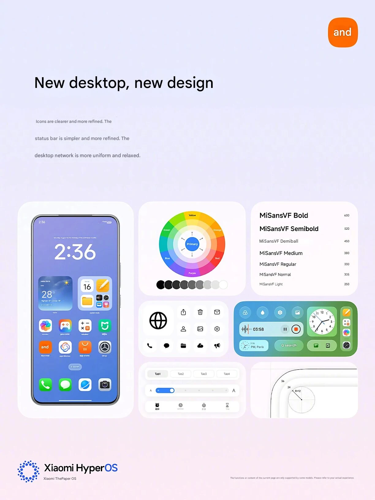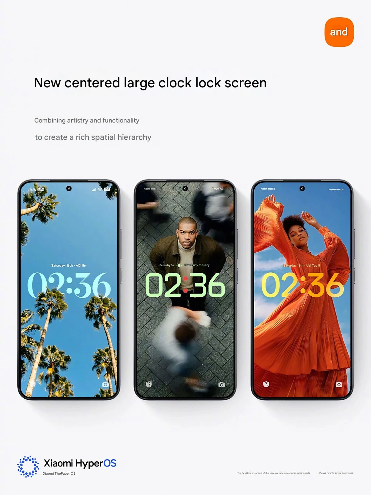 در HyperOS 3، رابط کاربری دسکتاپ و صفحه قفل به‌طور کامل بازطراحی شده است. آیکون‌ها به‌صورت مدرن و شفاف طراحی شده‌اند و نوار وضعیت ساده‌تر و مرتب‌تر شده است. همچنین، طراحی جدید صفحه قفل با استفاده از لایه‌بندی فضایی و نمایش ساعت بزرگ در مرکز، جلوه‌ای سینمایی به دستگاه بخشیده و ابزار ویرایش صفحه قفل به کاربران امکان شخصی‌سازی سریع و آسان را می‌دهد. سیستم پس‌زمینه پویا با هوش مصنوعی نیز به‌صورت هوشمند با عادات و محیط کاربر سازگار می‌شود، تا تجربه‌ای جذاب‌تر و کاربردی‌تر ایجاد شود.