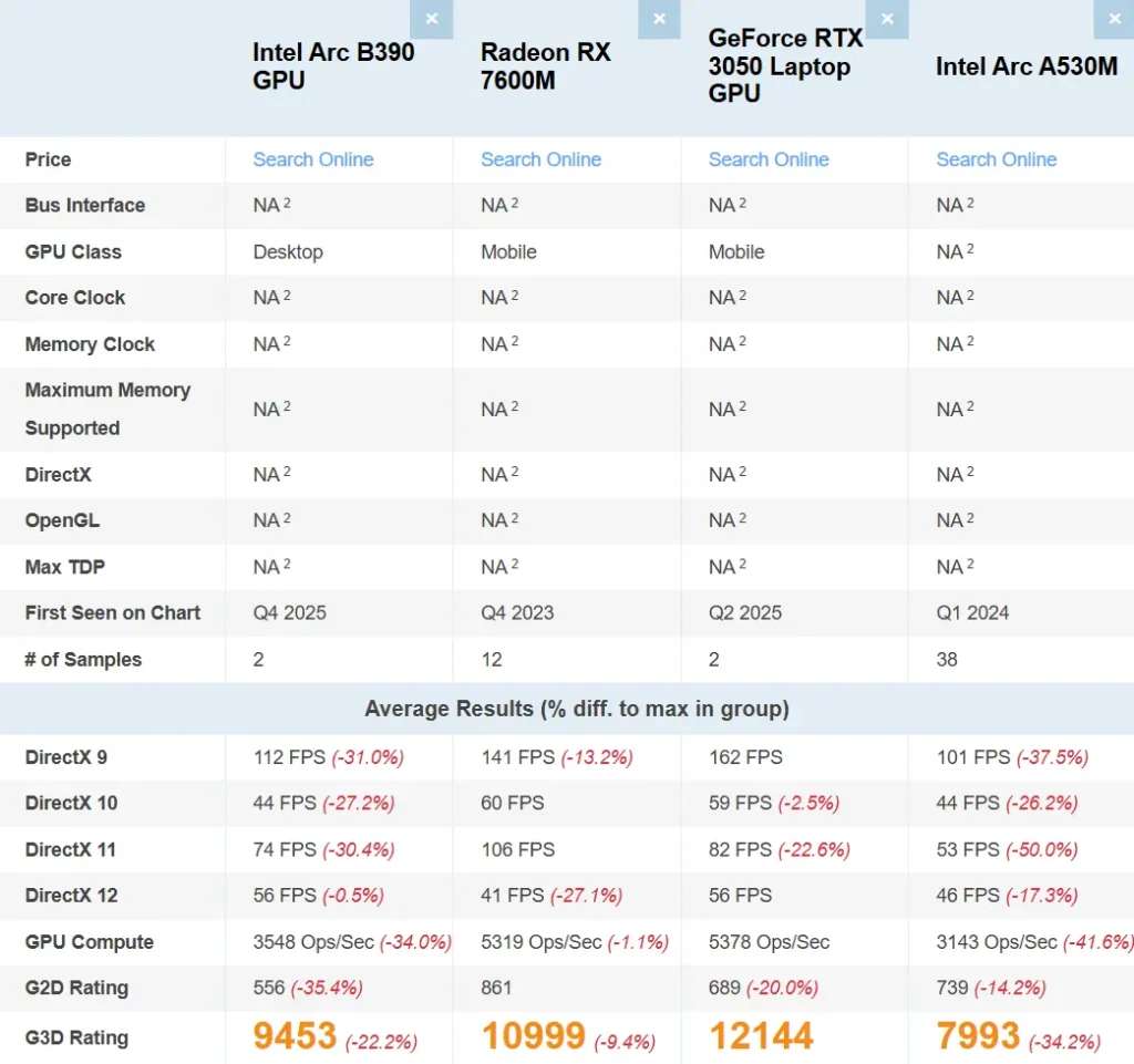 نتایج عملکرد در مقایسه با AMD هم جالب است. Arc B390 حدود ۱۶ درصد سریعتر از Radeon 890M ظاهر شده؛ iGPU قدرتمند RDNA 3.5 که در پردازندههای Strix Point استفاده میشود. هرچند AMD نسخه قویتری از 890M را برای سری Gorgon با فرکانس بالاتر آماده میکند، انتظار میرود که B390 همچنان برتری خود را حفظ کند. این اختلاف نشاندهنده بلوغ معماری Xe3 در پردازندههای جدید اینتل است.