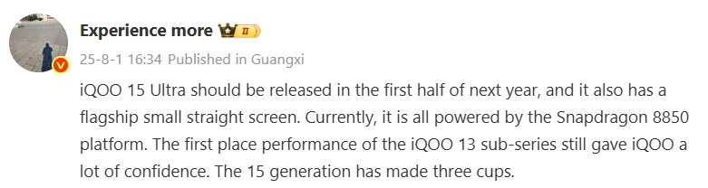 گفته میشود موفقیت سری آیکو ١٣ باعث شده این شرکت اعتماد بیشتری برای معرفی سه مدل از نسل بعدی پیدا کند. انتظار میرود آیکو ١۵ و مدل اولترا به پردازنده اسنپدراگون ۸ الیت ٢ (کد SM8850) مجهز شوند، اما درباره نسخه کامپکت هنوز اطلاعات دقیقی از پردازنده در دست نیست.