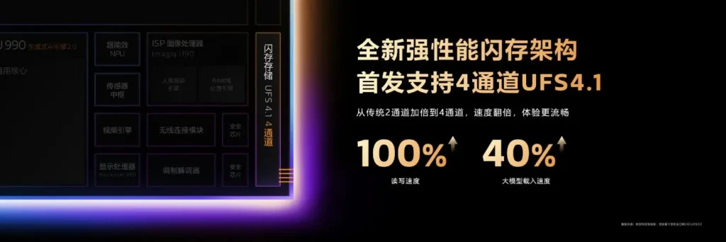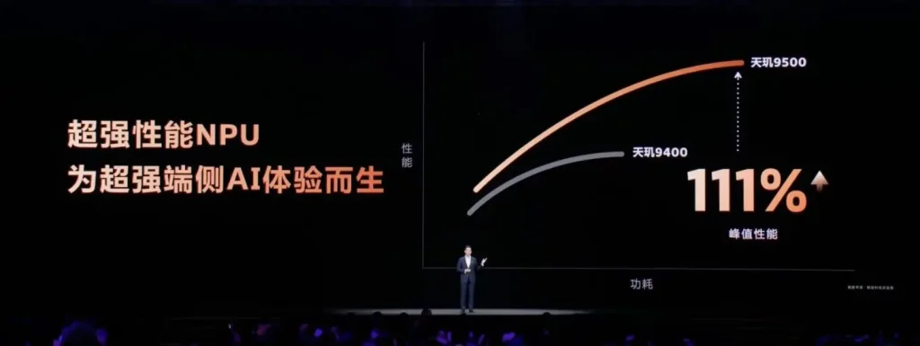 واحد پردازش عصبی جدید با نام NPU 990 به موتور نسل دوم Gen AI مجهز شده و قادر است ۴۰ درصد مصرف انرژی کمتر و دو برابر سرعت تولید توکن نسبت به نسل قبل ارائه دهد. این واحد میتواند تصاویر با کیفیت 4K تولید کند و در مجموع عملکرد آن نسبت به NPU بهکاررفته در دایمنسیتی ۹۴۰۰ تا ۱۱۱ درصد سریعتر است.