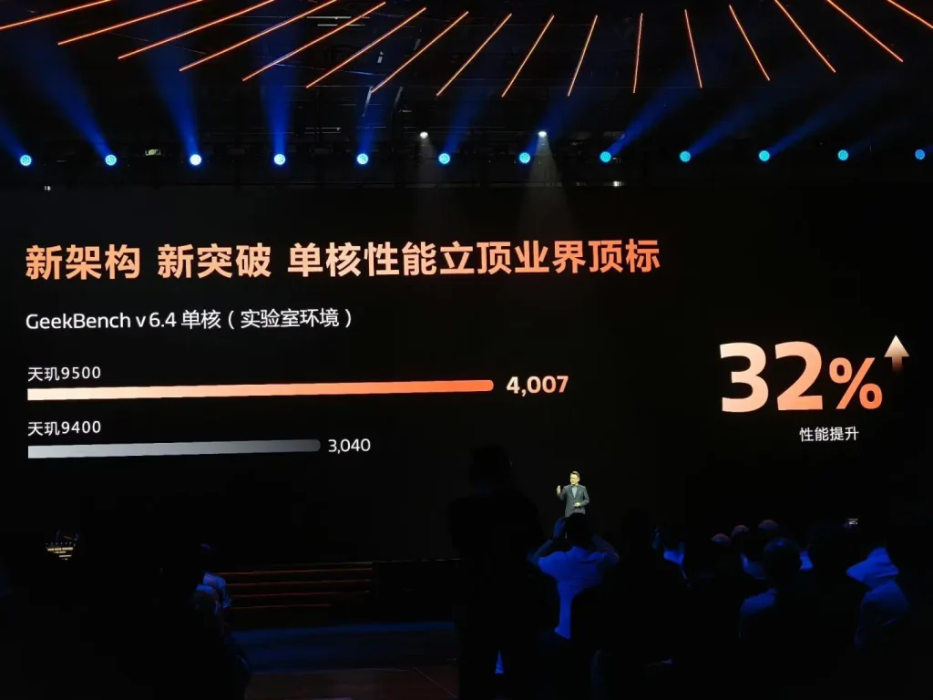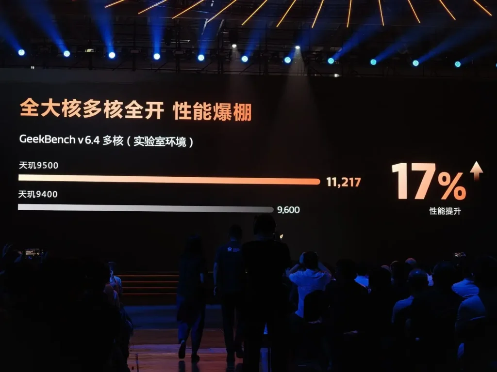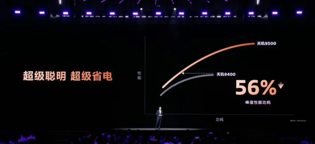 در تست گیکبنچ ۶، Dimensity 9500 توانسته امتیاز ۴۰۰۷ در تکهستهای و ۱۱۲۱۷ در چندهستهای کسب کند؛ نتایجی که هم از نسل قبل سریعتر است و هم دقیقاً همتراز با A19 Pro اپل قرار میگیرد. بهرهوری انرژی نیز بهبود یافته و مصرف توان اوج نسبت به نسل قبل ۳۲ درصد کمتر شده است. همچنین سرعت واکنش در باز شدن اپلیکیشنها به ۵۰ میلیثانیه با انحراف تنها ۱۰ میلیثانیه رسیده است.