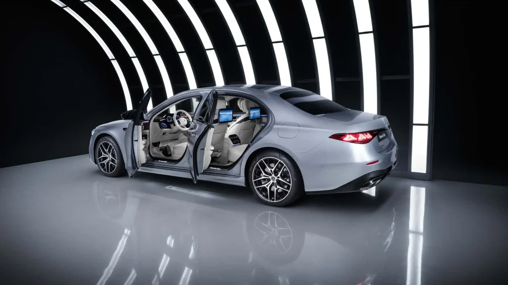 طراحی بیرونی اس کلاس ۲۰۲۷ با حفظ هویت آشنا، شامل چراغ‌های جلو با امضای مرسدس، جلوپنجره بزرگ‌تر با میله‌های عمودی مزین به ستاره‌های سه‌پر و سپری با خطوط تیزتر است. در عقب، چراغ‌های افقی با سه المان ستاره‌ای و نوار کرومی سراسری دیده می‌شود. رینگ‌های استاندارد ۱۹ اینچی و خط سقف روان نیز ظاهر لوکس و کلاسیک خودرو را کامل می‌کنند.