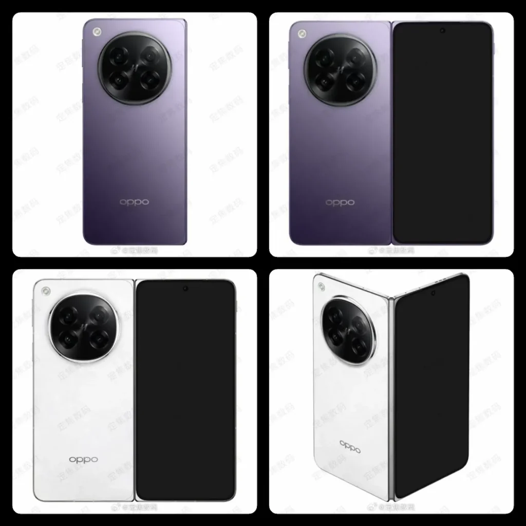 رندرهای منتشرشده در ویبو نخستین نگاه به نسخههای بنفش و سفید را ارائه میدهند. طراحی کلی با ماژول دوربین دایرهای حفظ شده، اما پنل چرمی نسخه بنفش نسل قبل حذف شده و فلش از داخل ماژول به بیرون منتقل شده است. نمایشگر داخلی در تصاویر دیده نمیشود. گزارشها همچنین از عرضه رنگهای بنفش، مشکی و سفید در بازار چین خبر میدهند.
