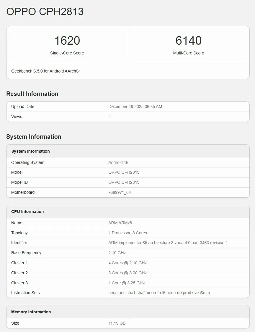 گیکبنچ تأیید کرده که رینو ۱۵ پرو و ۱۵ پرو مکس از تراشه دایمنسیتی ۸۴۵۰ استفاده میکنند؛ پردازندهای که پیشتر در رینو ۱۴ پرو نیز وجود داشت. فهرست این بنچمارک نشان میدهد هر دو مدل ۱۲ گیگابایت رم داشته و با اندروید ۱۶ عرضه میشوند. امتیاز مدل پرومکس در تست تکهستهای ۱۵۹۶ و چندهستهای ۶۱۲۴ است، درحالیکه مدل پایینردهتر اعداد بیشترِ ۱۶۲۰ و ۶۱۴۰ را ثبت کرد.