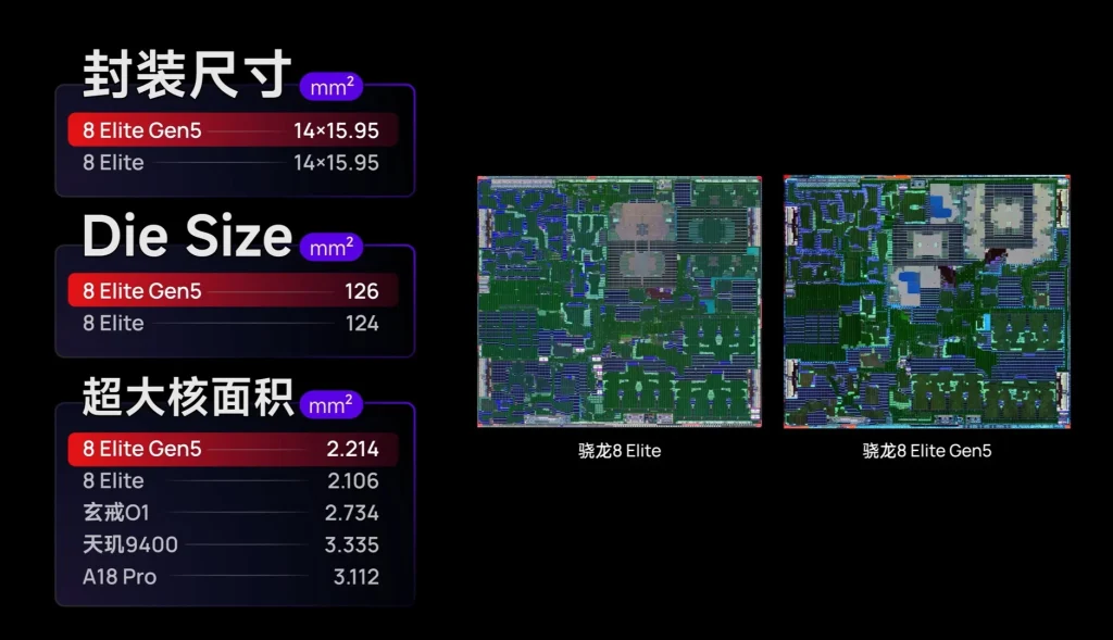 تراشه ترکیبی از دو معماری هستهٔ پرقدرت Oryon L و شش هستهٔ کم‌مصرف Oryon M ارائه می‌دهد. هر خوشه شامل ۱۲ مگابایت کش L2 اشتراکی و ۸ مگابایت برای کل SLC است. این طراحی همراه با افزایش کش دستورالعمل L1 به ۱۹۲ کیلوبایت و بهینه‌سازی واحدهای ALU، FMUL و SIMD، کارایی تراشه را به شکل ملموسی ارتقا داده است. دیاگرام die اندازهٔ تراشه را ۱۲۶ میلی‌متر مربع نشان می‌دهد؛ کمی بزرگ‌تر از نسل قبل (۱۲۴ میلی‌متر مربع) اما همچنان جمع‌وجور و کارآمد در مقایسه با برخی رقبا است.