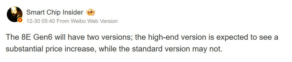 نسخه پرو تراشه جدید علاوه بر لیتوگرافی پیشرفته، از معماری پردازنده Oryon بهره خواهد برد و انتظار میرود قیمت آن از ۳۰۰ دلار فراتر رود. چنین هزینهای باعث میشود بسیاری از سازندگان نتوانند این نسخه را در محصولات خود به کار گیرند. در نتیجه، نسخه استاندارد که افزایش قیمت چشمگیری نخواهد داشت، گزینه اصلی برای تولید انبوه گوشیهای پرچمدار باقی خواهد ماند.
