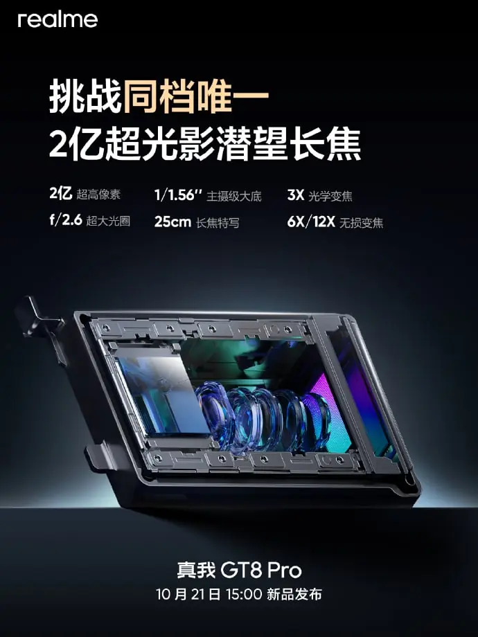 شرکت ریلمی آماده میشود تا در تاریخ ۲۱ اکتبر (۲۹ مهر) از پرچمدار جدید خود، سری GT 8 رونمایی کند. در حالی که تاکنون بخش زیادی از جزئیات مدل GT 8 Pro از طریق افشاها و تیزرهای رسمی منتشر شده بود، این برند اکنون با انتشار اطلاعات تکمیلی، مشخصات دوربین اصلی این گوشی را بهطور رسمی تأیید کرده است.