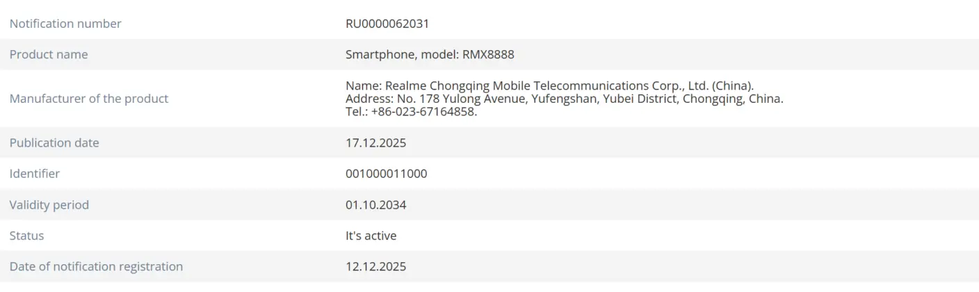 همچنین محصول دیگری از ریلمی با شماره مدل RMX8888 موفق به دریافت تأییدیه از نهاد اروپایی EEC شده است. این مدل احتمالاً نسخهای تغییریافته یا ریبرندشده از Neo 8 برای بازار جهانی محسوب میشود. با این حال، با توجه به احتمال تفاوت کامل این دستگاه، بهتر است تا انتشار گزارشهای بعدی درباره نام نهایی و جایگاه دقیق آن منتظر ماند.