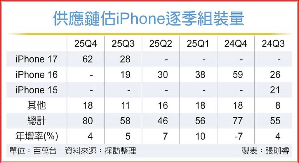 در سهماههی سوم ۲۰۲۵، حدود ۲۸ میلیون دستگاه آیفون ۱۷ مونتاژ شده، در حالیکه در دورهی مشابه سال قبل ۲۶ میلیون دستگاه تولید شده بود؛ یعنی افزایشی حدود ۷.۷ درصدی. مجموع تولید آیفونهای ۱۷ در سهماهههای سوم و چهارم امسال، حدود ۵ میلیون دستگاه بیشتر از مدلهای آیفون ۱۶ در بازهی مشابه سال ۲۰۲۴ است. برخلاف مدل های پایه، پرو و مکس مدل ایفون ایر هنوز در چین عرضه نشده و دلیل آن، مشکلات مقرراتی مربوط به پشتیبانی از eSIM عنوان شده است.